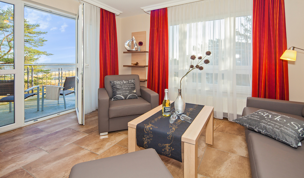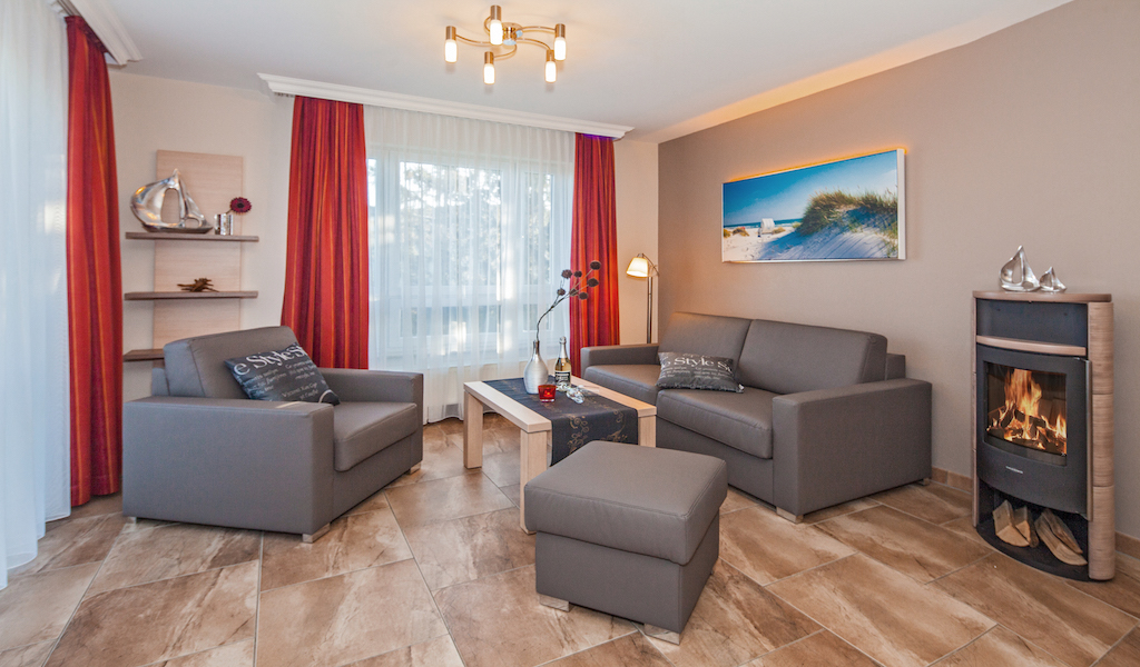 Dieses traumhafte 3-Zimmer Appartement ist auf Grund seiner 2 Schlafzimmer mit Doppelbett und dem zusätzlichen Gäste WC für größere Familien mit 2-4 Personen oder 2 Paare bestens geeignet. Exklusiv eingerichtet bietet die geräumige Ferienwohnung zusätzlich die Möglichkeit zwischen Balkon/ Ostseeblick/Kamin oder Terrasse/ Kamin zu wählen.